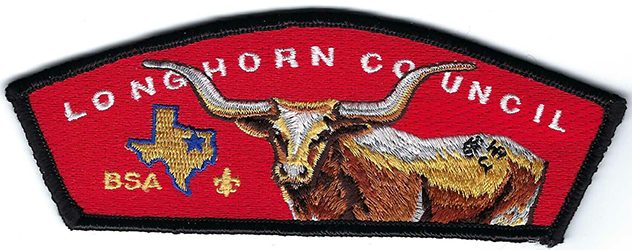 Longhorn Council S61; Every council has shoulder patches that individually identifies their council. Council shoulder patches came into existence in 1972. The councils change their designs that are embroidered on their CSP’s.